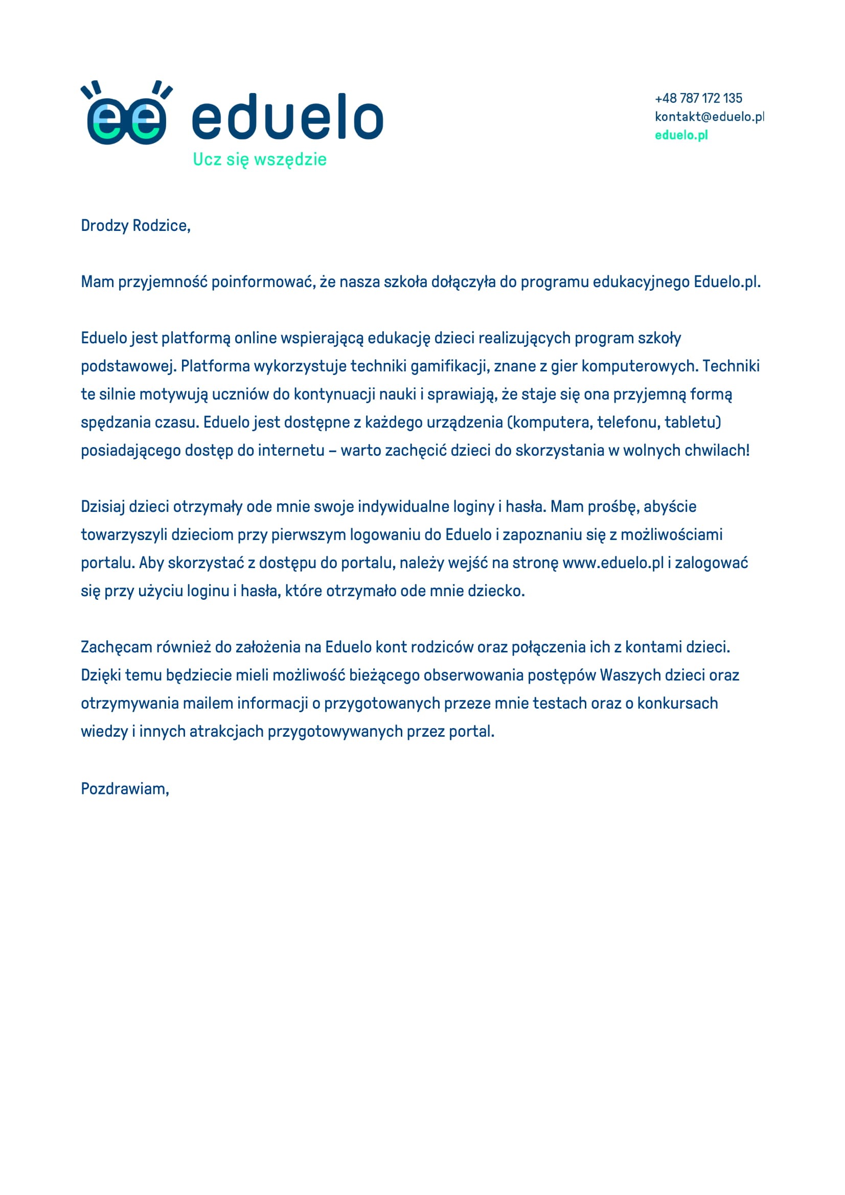 Wszyscy uczniowie mają wygenerowane hasła do platformy. Wiadomości zostały wysłana przez dziennik elektroniczny dlatego proszę o ich odczytywanie. W przypadku problemów z dostępem proszę o kontakt na adres:Ten adres pocztowy jest chroniony przed spamowaniem. Aby go zobaczyć, konieczne jest włączenie w przeglądarce obsługi JavaScript. lub z wychowawcami klas.